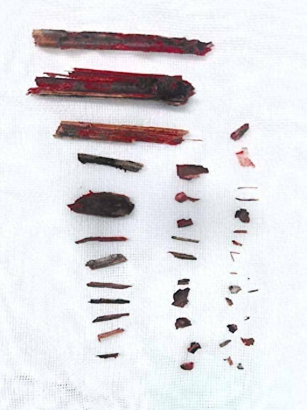 手术中大夫发现,刘先生鼻腔内共插入竹片约40块,粗细不一,最粗直径近10毫米,最笃定如牙签。竹片刺入标的各别,部分垂直进取,部分斜向穿插,剖解筹谋复杂。