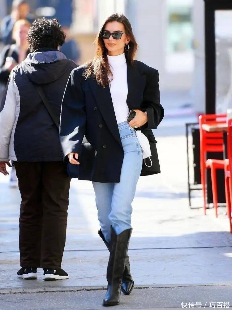 这里还需要说小数的是,遴荐牛仔裤+长靴的组合时,环球也需要厚爱挑选与之搭配的上衣,为了保证单品上身不打压身高,提议径直打消过膝羽绒服或大衣,减少上衣衣摆与长靴重复,是幸免单品上身打压身高的重要。