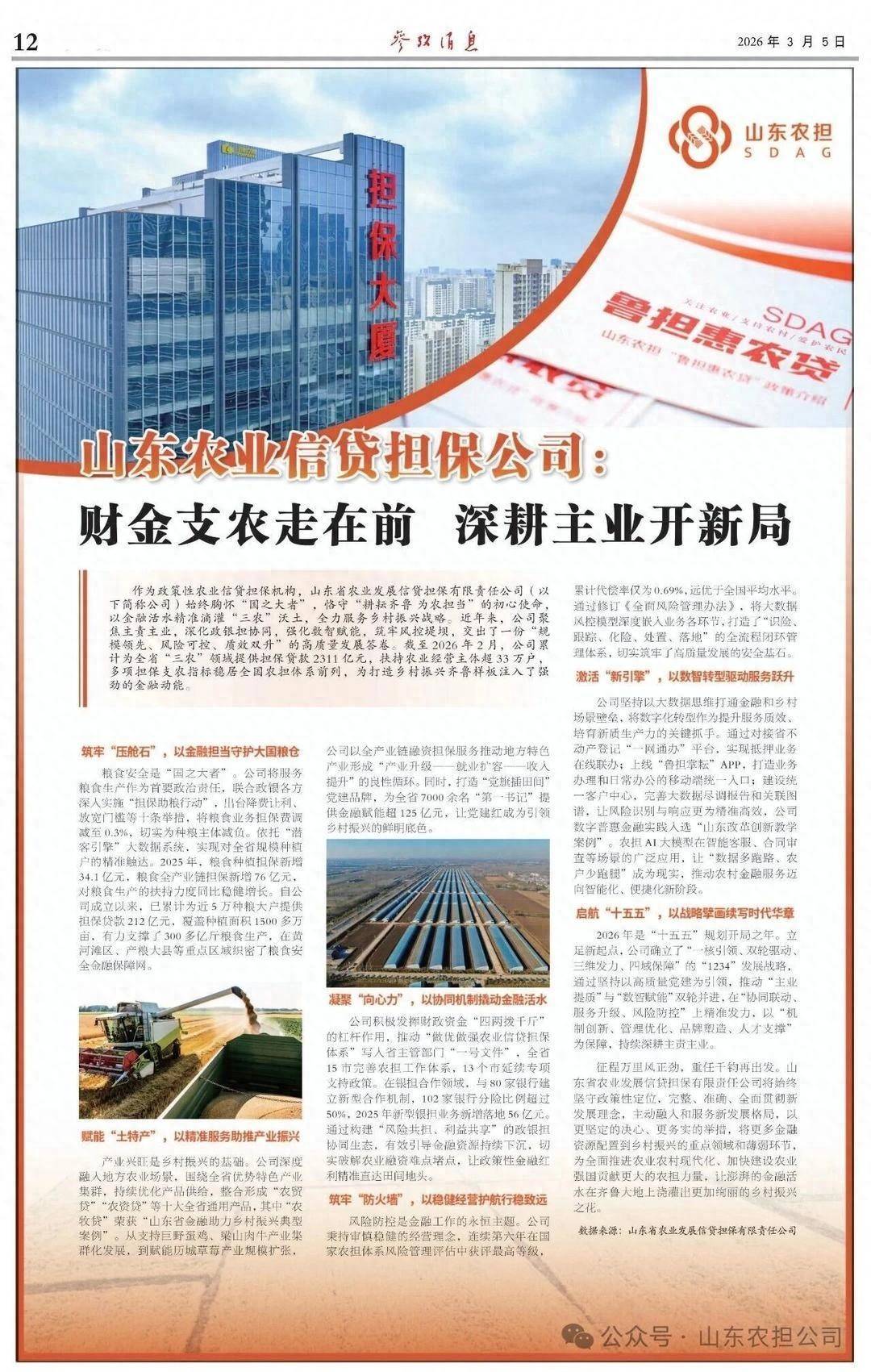 2026年3月5日,碰巧宇宙两会召开之际,山东农业信贷担保公司在《参考音讯》宇宙两会版刊发相称报谈,联结展现公司以财金支农助力乡村振兴的实践与奏效。